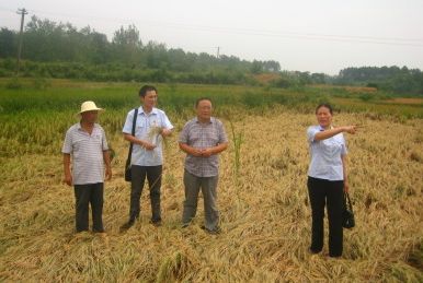 庭长陈芳、干警张全辉到受灾稻田了解受灾情况